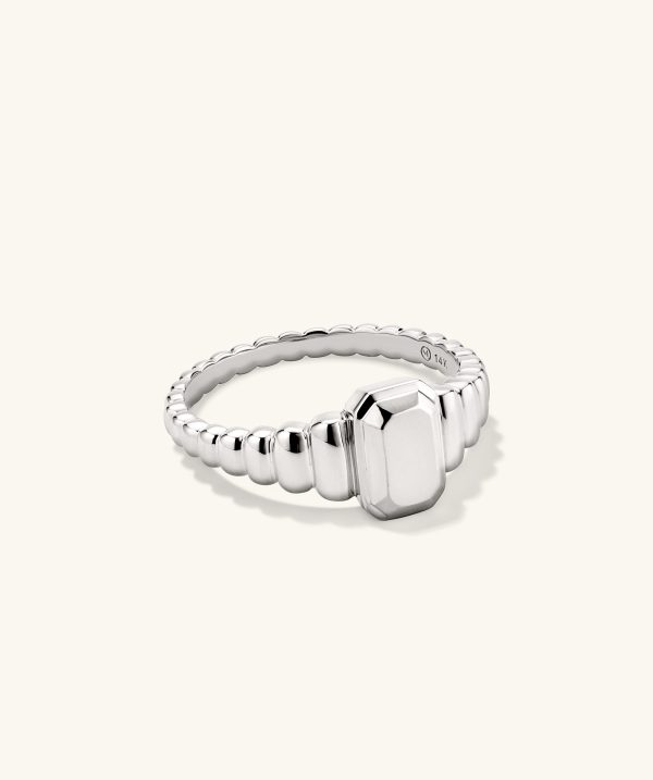 Make a statement (you always do.) This engravable signet ring adds texture, and the finishing touch, to every look.
