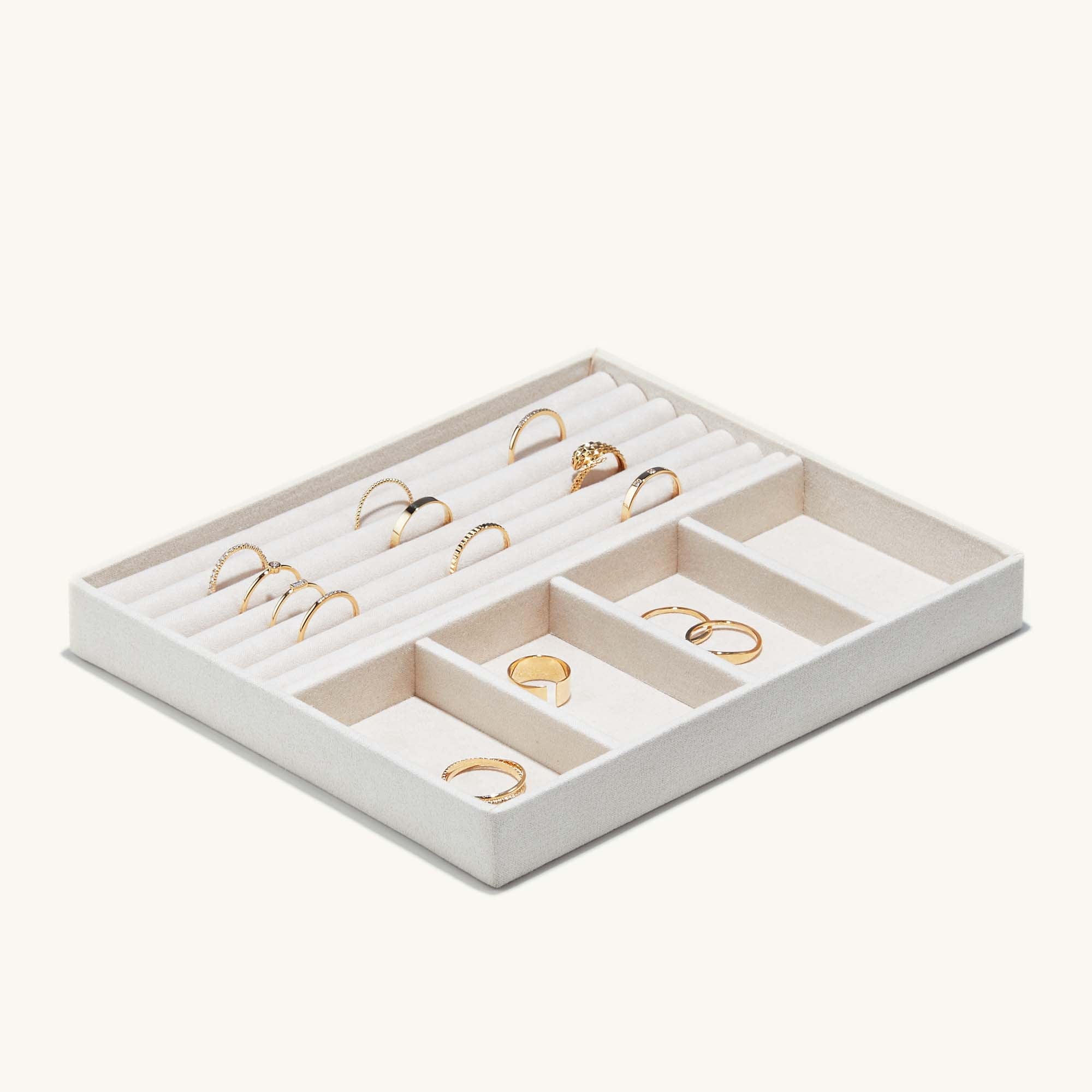 It’s time to get it together—your jewelry that is. Thank your Ziploc bags + chipped dishes for their service, because you’re moving on up. Featuring three removable trays and specially designed compartments to fit all things fine. Plus, add a personal touch with monogrammed letters.
