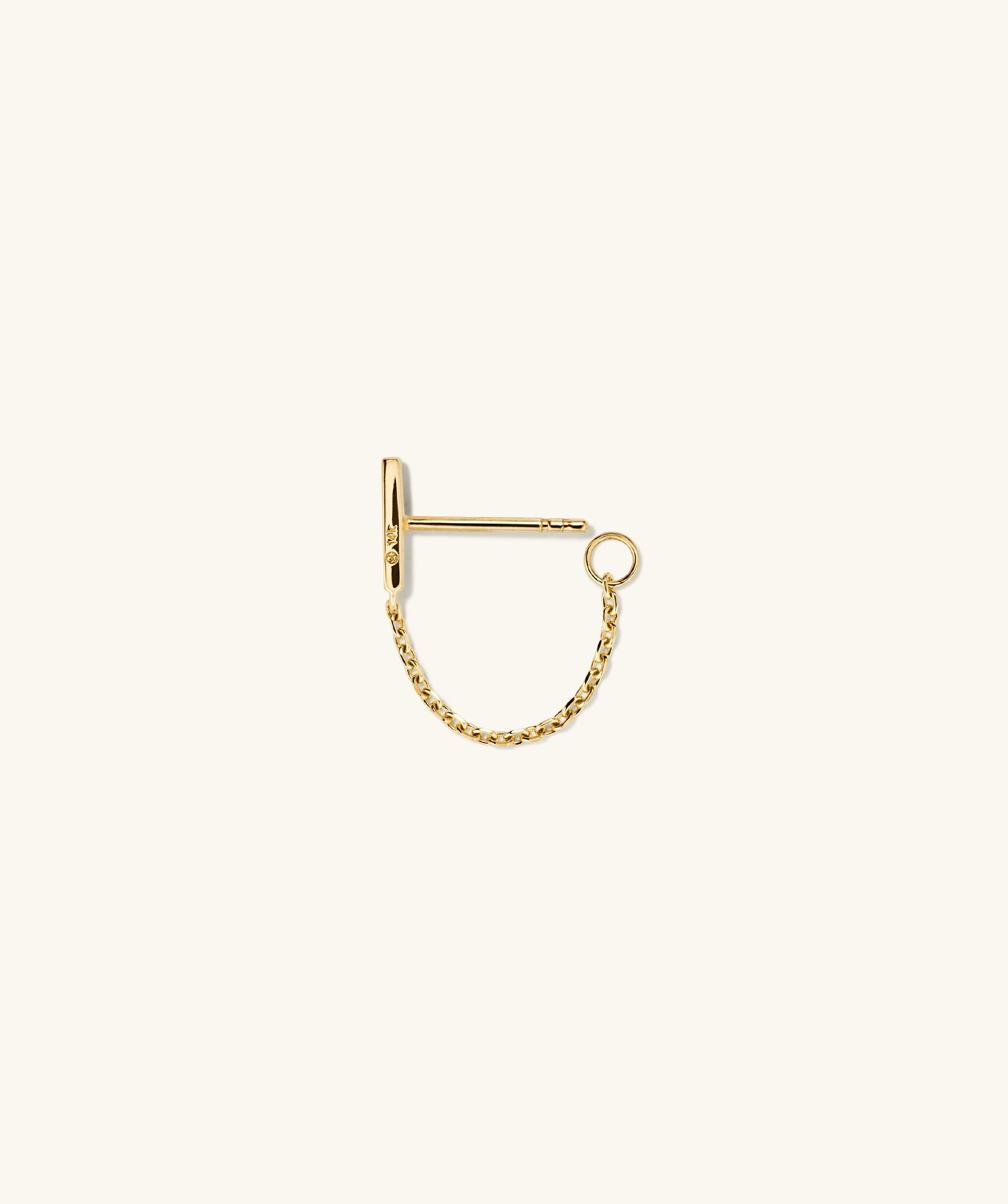 Your artistry is showing. Design your ear stack your way: hook the chain on to an adjacent piercing or loop it front to back. Handcrafted in 14k gold featuring a bar accent.